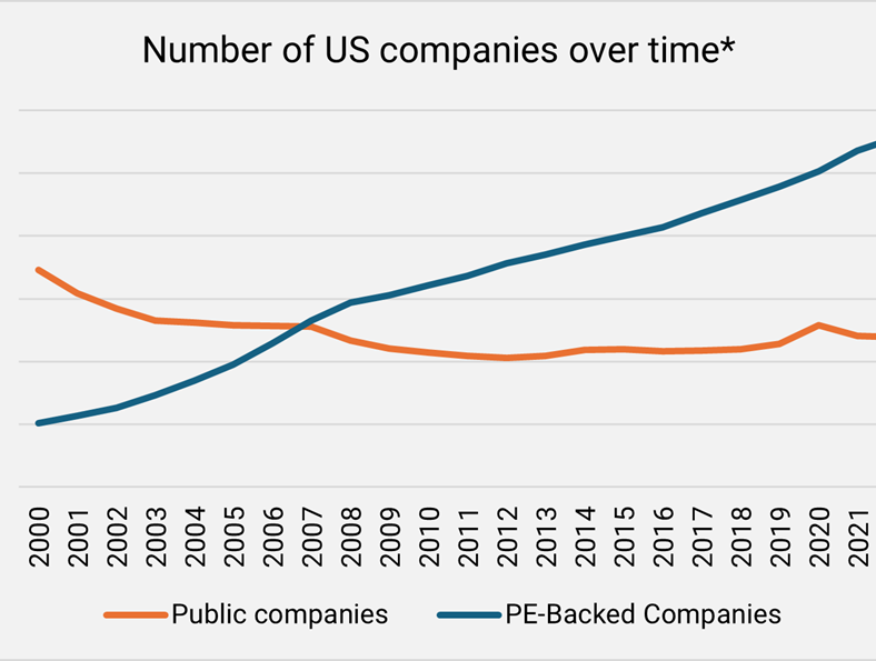 Source: Pitchbook. Private-equity-backed companies exclude venture capital.